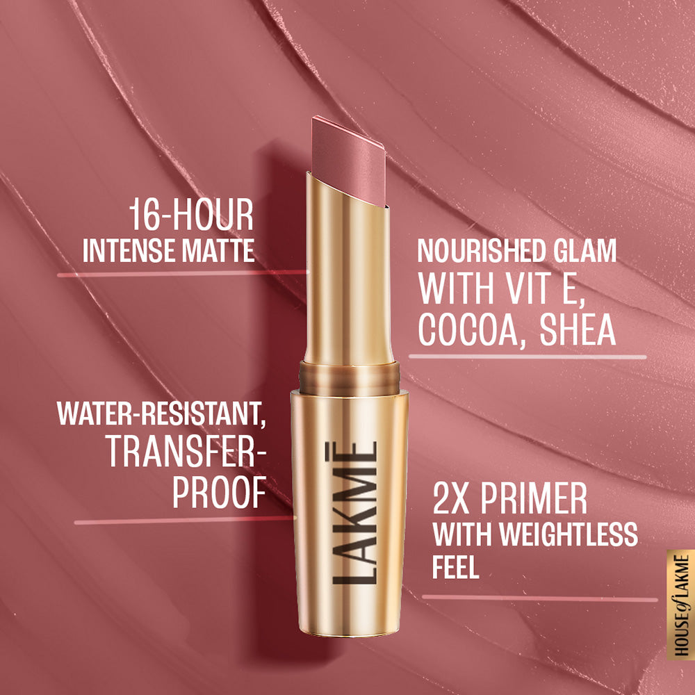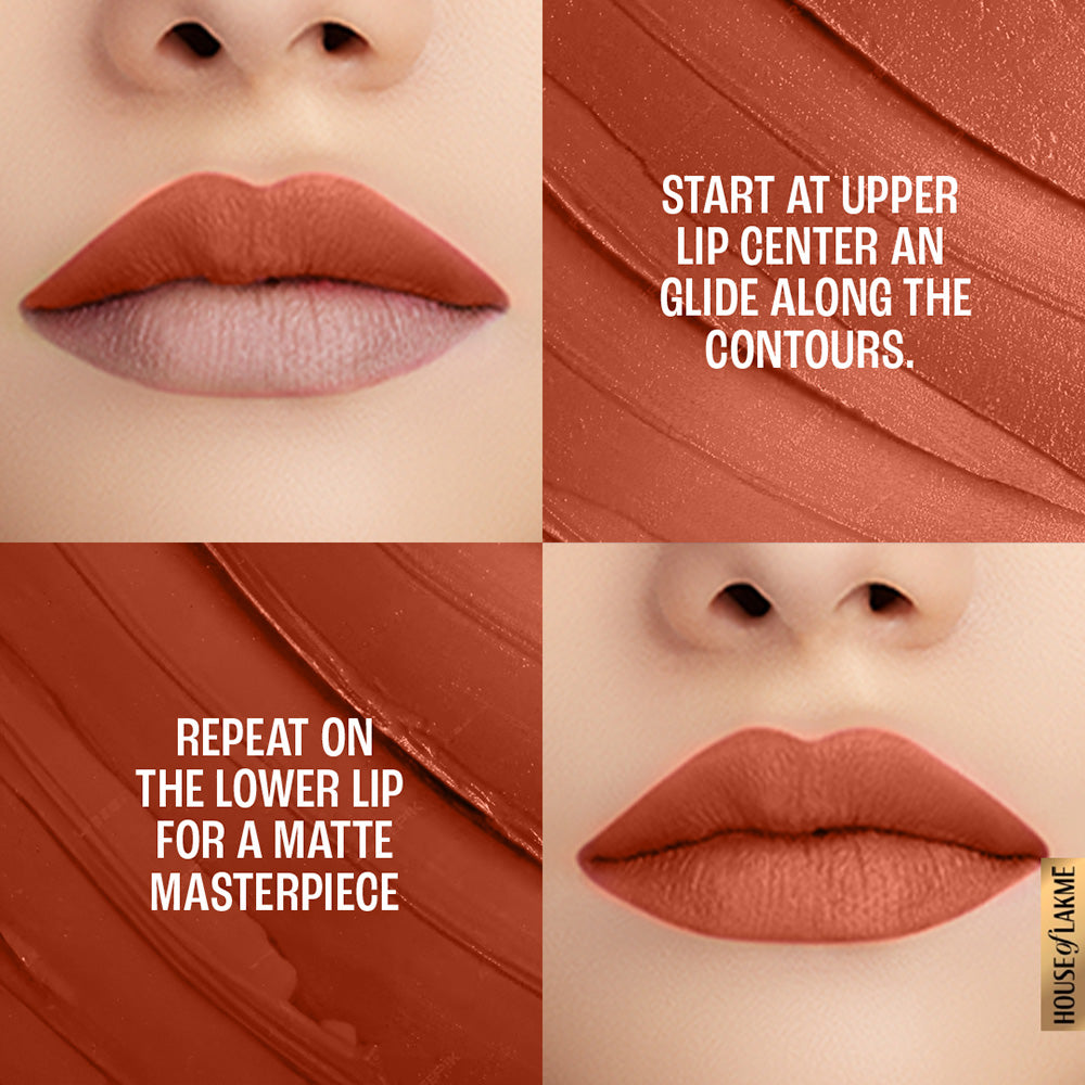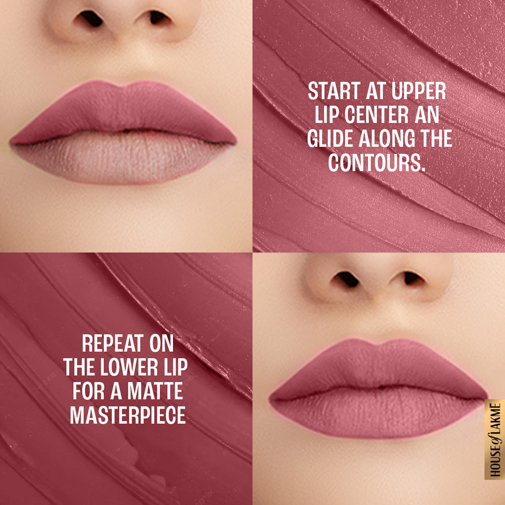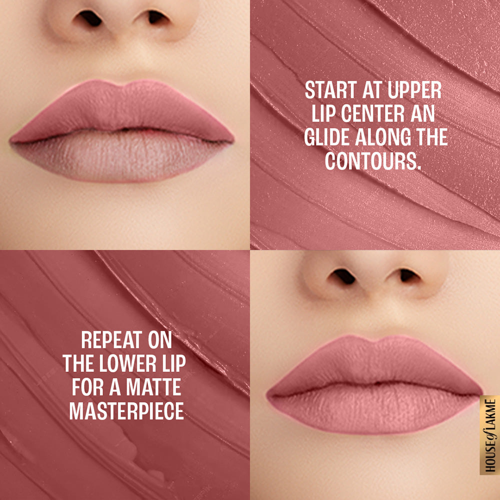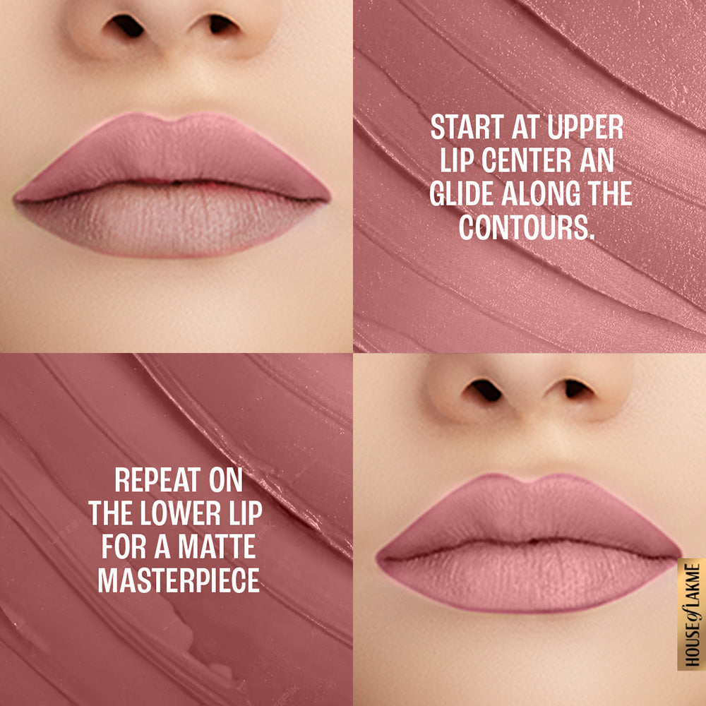 An unstoppable matte, for an unstoppable you! Introducing Lakmé 9to5 Primer+Matte Lipstick, with 2x built-in primer that gives your lips a long-lasting, smooth matte finish. It glides onto your lips smoothly and feels extremely comfortable and lightweight. The built-in primer ensures that the color settles onto your lips evenly. With 14-hour long stay power, it is your perfect companion in conquering the day! Now say goodbye to touch-ups through the day, as this lipstick was made for the woman who doesn’t stop! Available in 20 intensely rich, matte shades, your search for the perfect color ends with Lakmé 9to5 Primer+Matte Lipstick. Choose from a wide range of nudes, pinks, reds, browns, and plums that deliver rich color without drying out your lips. It glides on smoothly for a flawless matte finish and a vibrant color payoff. Pair it with Lakmé 9to5 Primer+Matte Perfect Cover Foundation, Lakme 9TO5 Eye Color Quartet Eye Shadow and Lakmé Eyeconic Kajal to flaunt your fabulous looks round the clock! Look good and feel unstoppable as you put on your makeup. How to apply: Start applying the lipstick at the centre of your upper lip and follow the contours of the lips. Glide it across the bottom lip for a smooth finish.