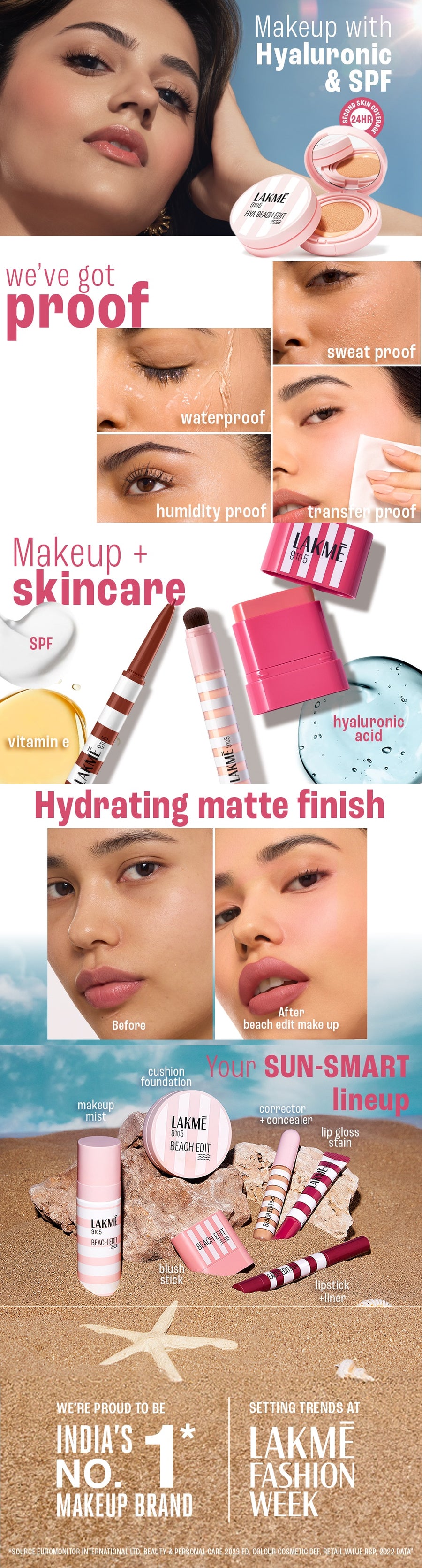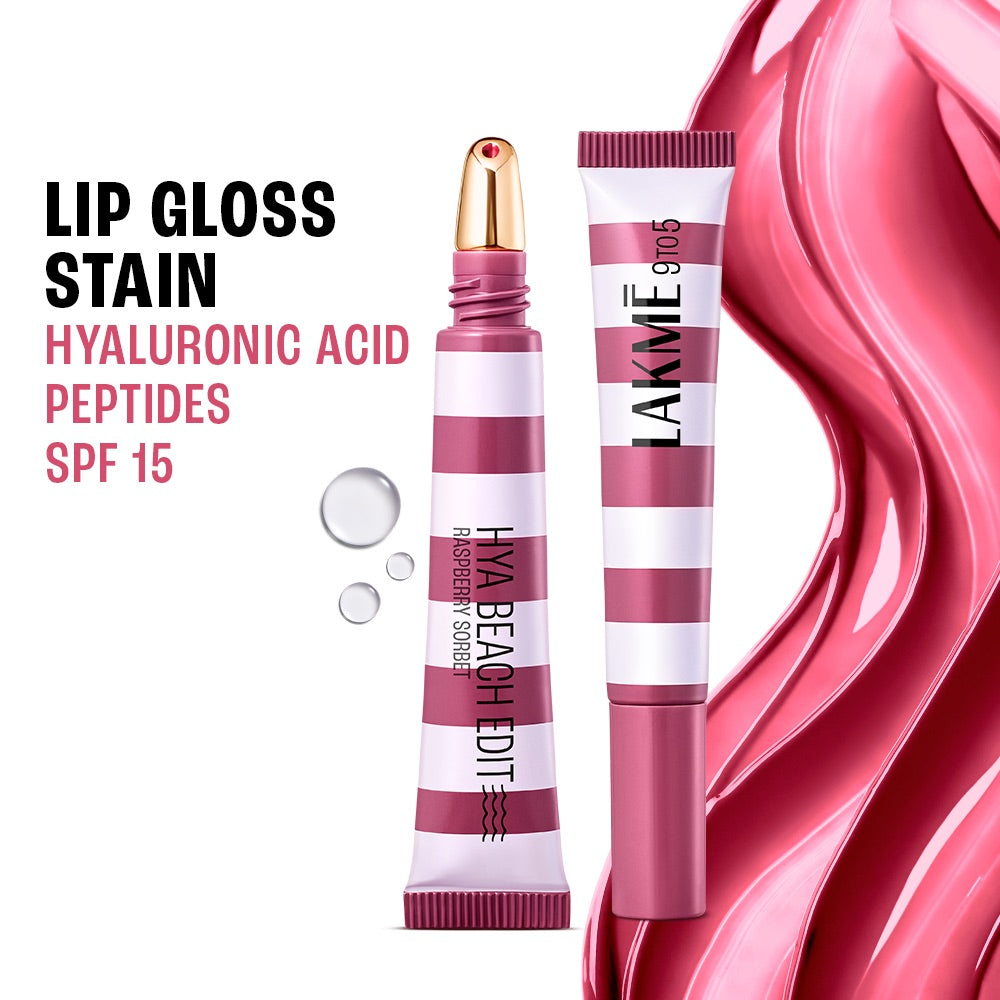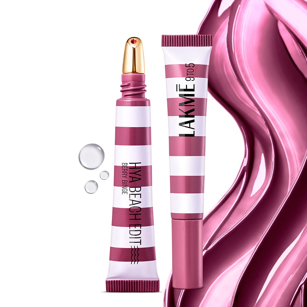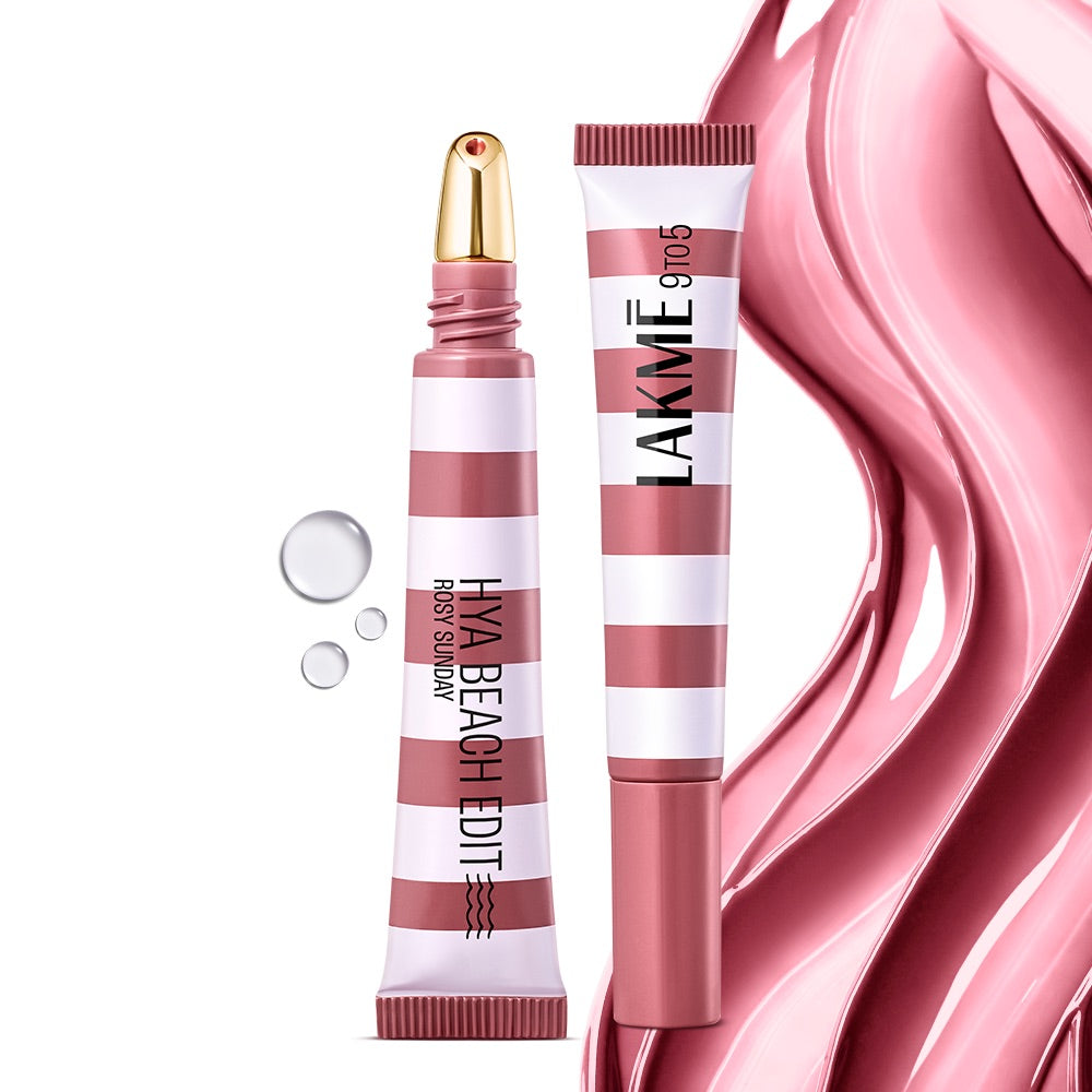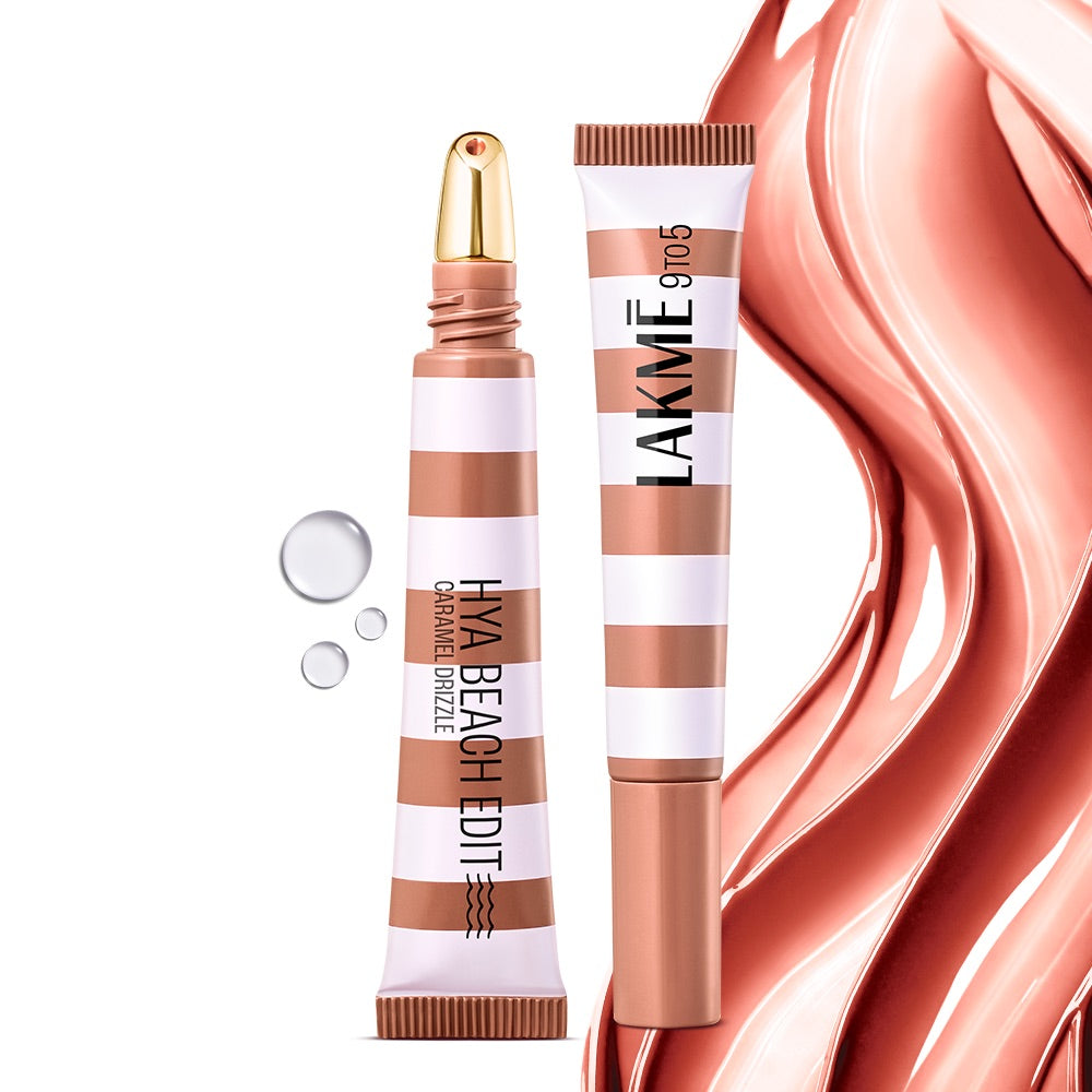 Discover the perfect blend of gloss and care with the Lakme 9to5 Hya Beach Edit Lip Gloss Stain. This innovative product combines the shine of a gloss with the nourishing benefits of a balm, ensuring soft, hydrated lips all day. Infused with hyaluronic acid, linoleic acid, and vitamin E, it works to repair the lip barrier, lock in moisture, and even out pigmentation, making it an essential addition to your lipstick collection. Designed for all-day comfort, this lightweight, non-sticky lip gloss stain delivers broad spectrum SPF 15 protection, shielding delicate lips from sun damage throughout sun exposed days outdoors. Its unique cool metal applicator provides a soothing sensation and ensures a hygienic application, making it ideal for those with dry or chapped lips. Whether you're looking for a brown lip gloss or a nude one, these versatile shades are created to suit Indian skin tones for a naturally radiant look. Giving tint with a glossy finish, it delivers a long-lasting stain that keeps your lips looking luscious and plump. The Lakme 9to5 Hya Beach Edit Lip Gloss Stain is available in six stunning shades, inspired by vacation treats, perfect for any occasion. So, if you are a brown, pink or a nude lipstick girl, you will enjoy the shades Lakme Lip Gloss Stain offers. Elevate your lip care routine with this luxurious lip gloss stain that hydrates, smooths, and enhances your lips effortlessly. Swipe, shine, and repeat for irresistibly soft, nourished lips. So, add Lakme Hya Beach Edit Lip Gloss Stain to your collection of Lakme Liquid Lipsticks and Matte Lipsticks. If you enjoy long-lasting lipsticks but also want glossy look, Lakme Lip Gloss Stain will be the perfect solution. Tried and tested by users: 100% agree it hydrates, soothes, and visibly plumps lips. * 96% say lips feel smooth and soft all day. * *Basis consumer study 2025.